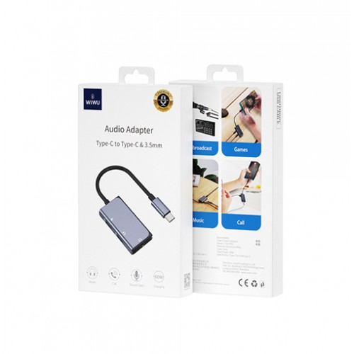| Features | Type C to dural type c+ 3.5mm audio Support 20V/3A, 60W (Max) quick charge Built-in Microphone, support music listening & Phone Call Widely compatible with Type C devices, such as Tablet/ Laptop/ Smart phone |